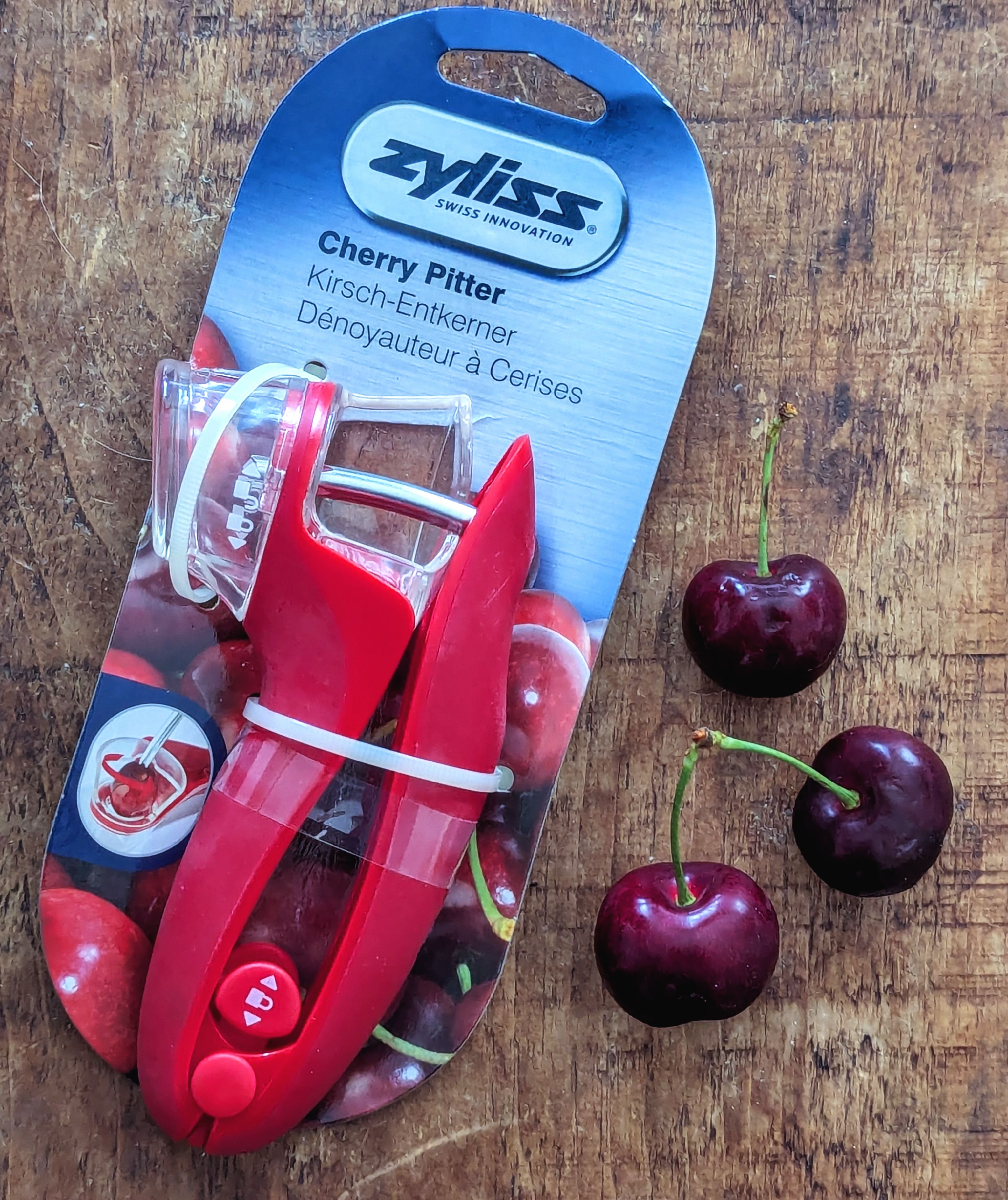 If you want a quick method of removing the stones from our fresh cherries then a cherry pitter might be just the tool. The Zyliss Cherry & Olive Pitter helps you to quickly and effortlessly remove the pits / stones from cherries with one squeeze and collects juice and stones cleanly in its internal reservoir.